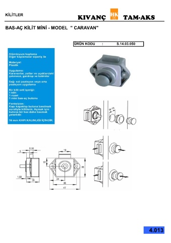 KİLİTLER KIVANÇ TAM-AKS BAS-AÇ KİLİT MİNİ - MODEL " CARAVAN" ÜRÜN KODU : S.14.03.050 4.013