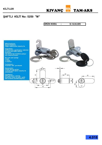 KİLİTLER KIVANÇ TAM-AKS ŞAFTLI KİLİT No: 5250 "M" ÜRÜN KODU : S.14.04.605 4.018