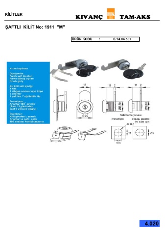 KİLİTLER KIVANÇ TAM-AKS ŞAFTLI KİLİT No: 1911 "M" ÜRÜN KODU : S.14.04.507 4.020