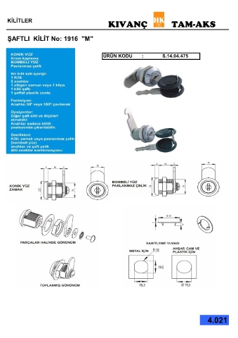 KİLİTLER KIVANÇ TAM-AKS ŞAFTLI KİLİT No: 1916 "M" ÜRÜN KODU : S.14.04.475 4.021