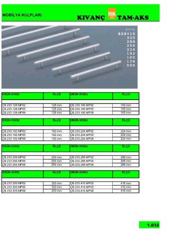 ÇB.233.192 MP02 192 mm ÇB.233.224 MP02 224 mm